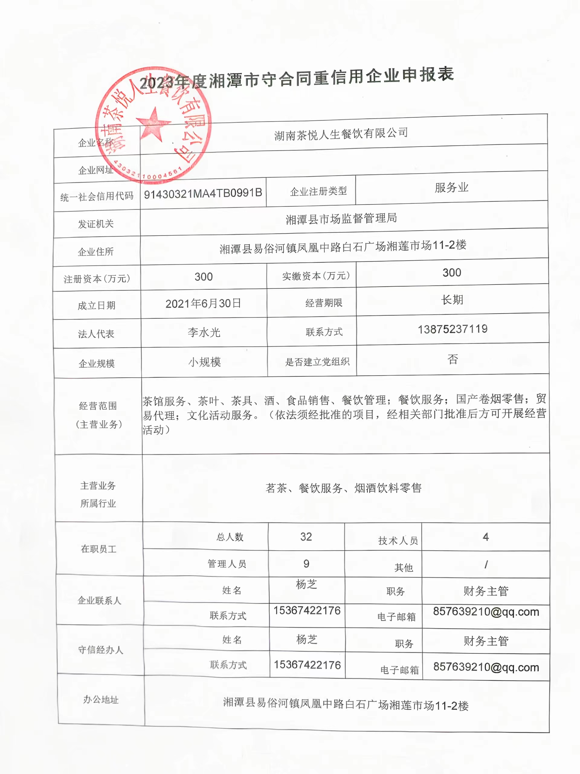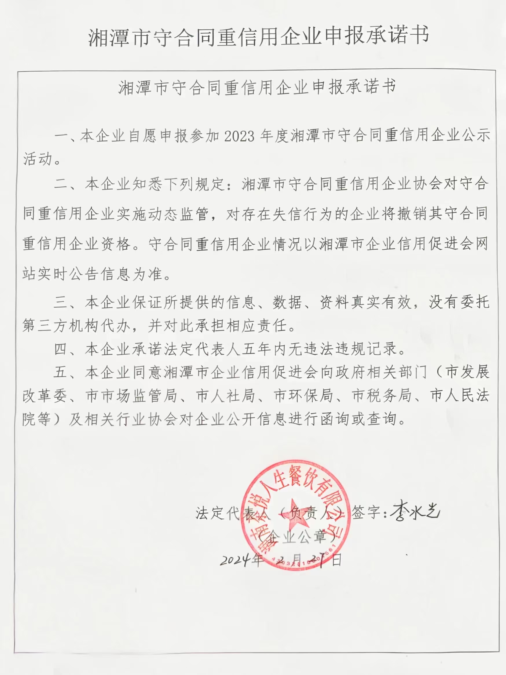 本企業根據《湘潭市守合同重信用企業申報規定》等編制 2023 年度企業信用報告書,并保證本報告書內容真實、準確、完整。