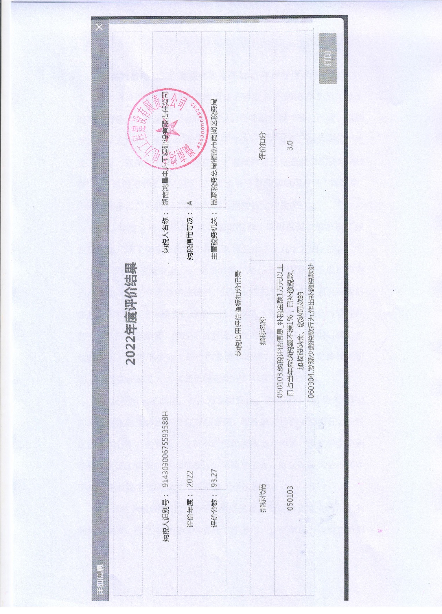 企業納稅信用等級報告: