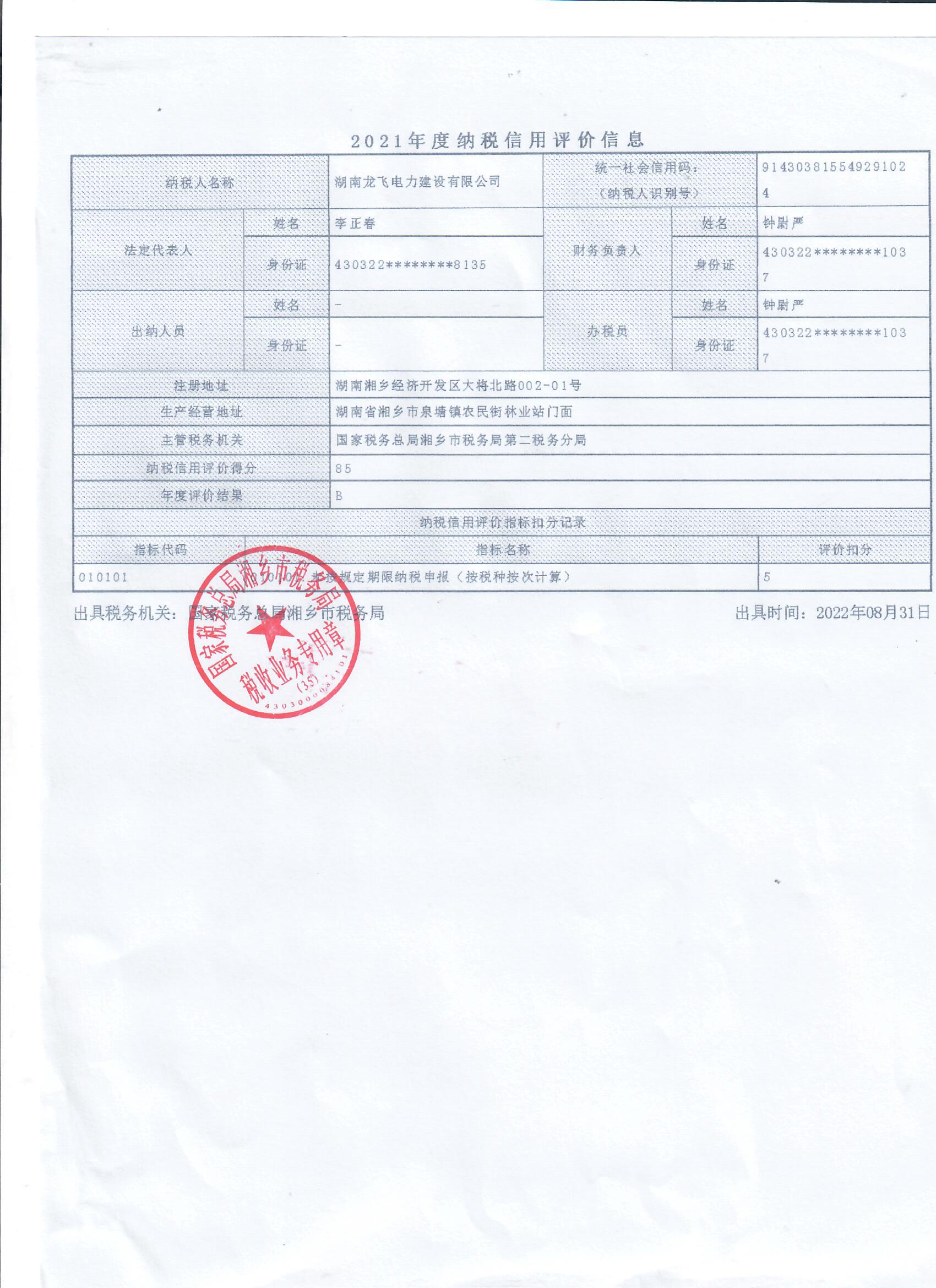 企業納稅信用等級報告: