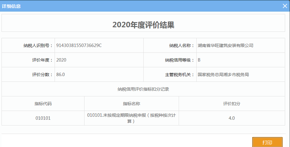 企業(yè)納稅信用等級報告: