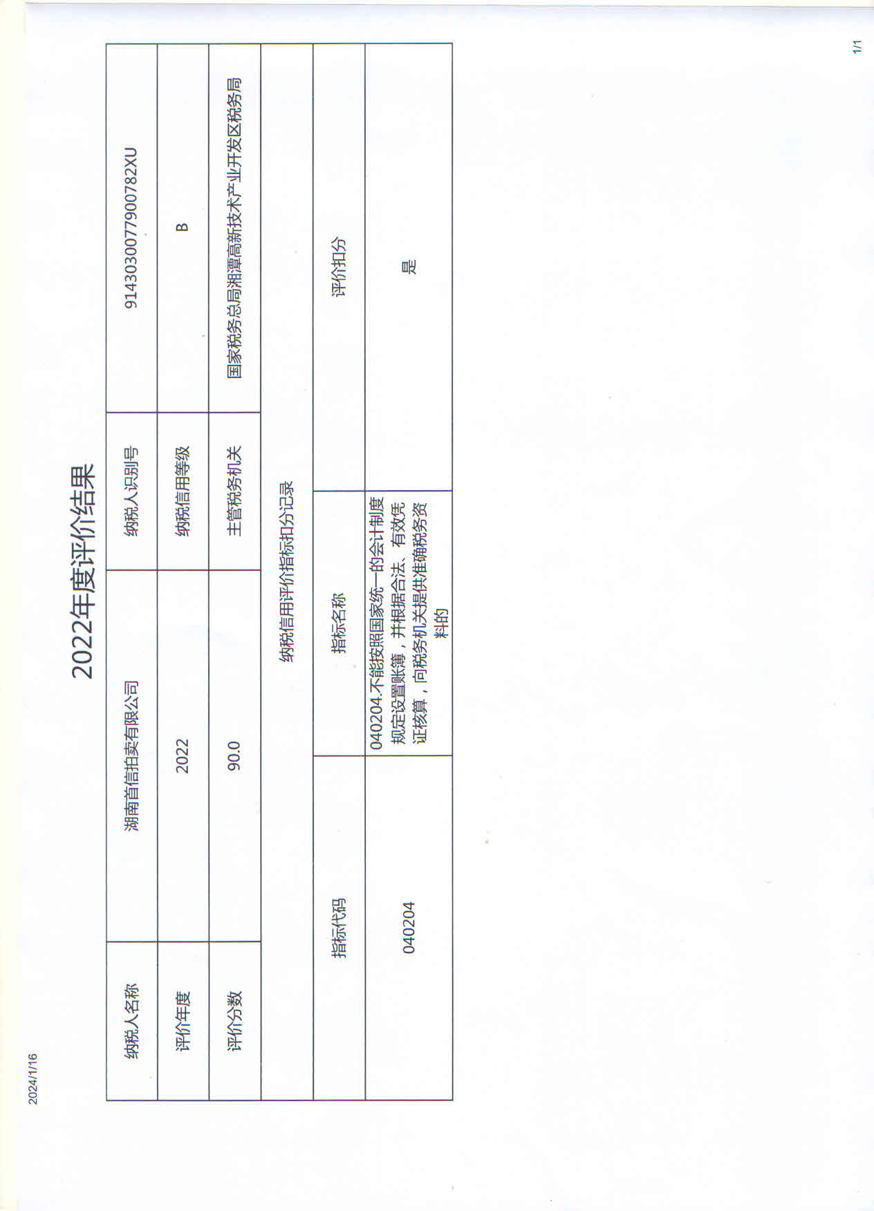 企業納稅信用等級報告: