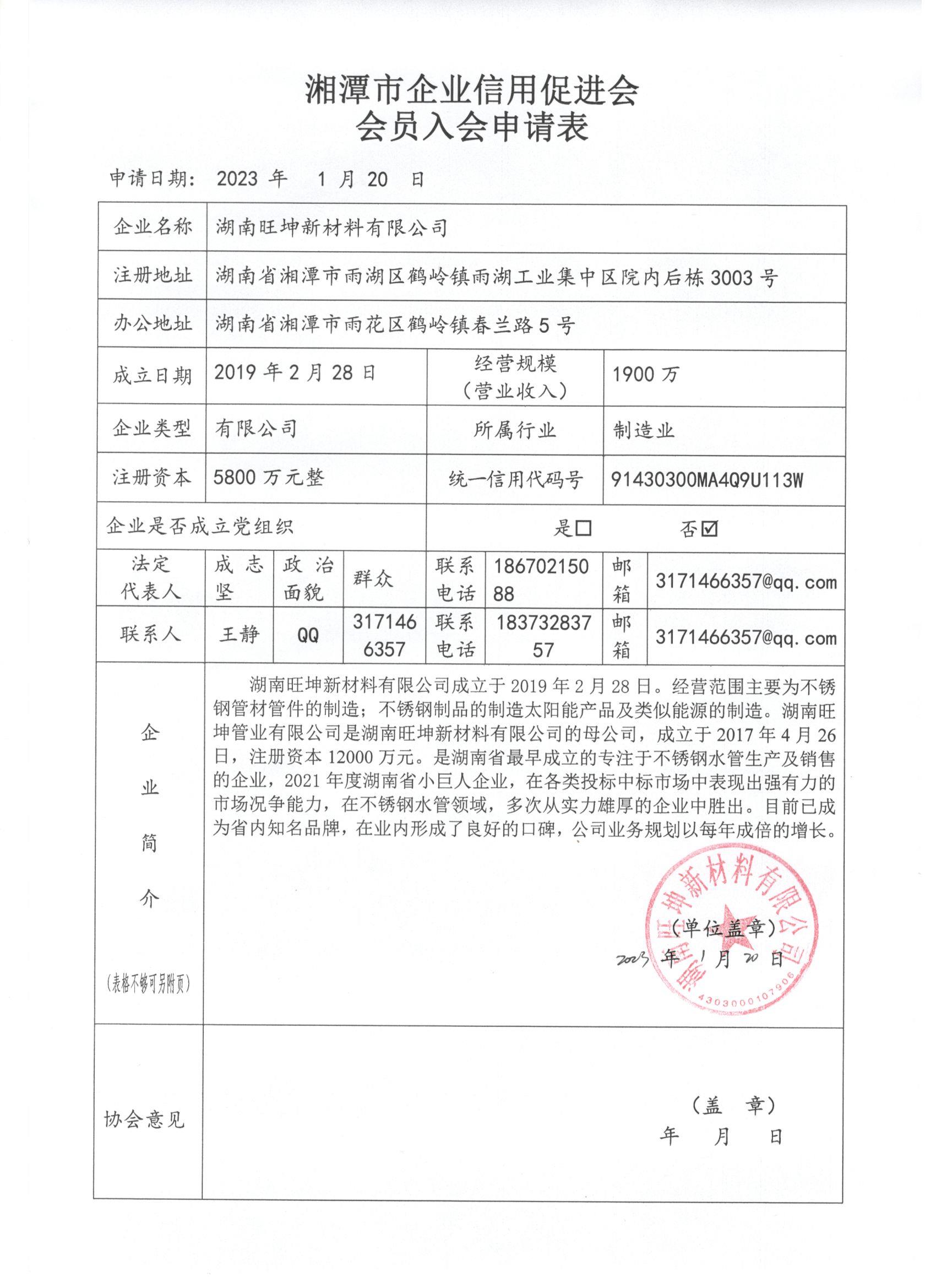| 名稱: 湖南旺坤新材料有限公司 | 登記證號: 91430300MA4Q9U113W | 法定代表人: 成志堅 | |||||||||