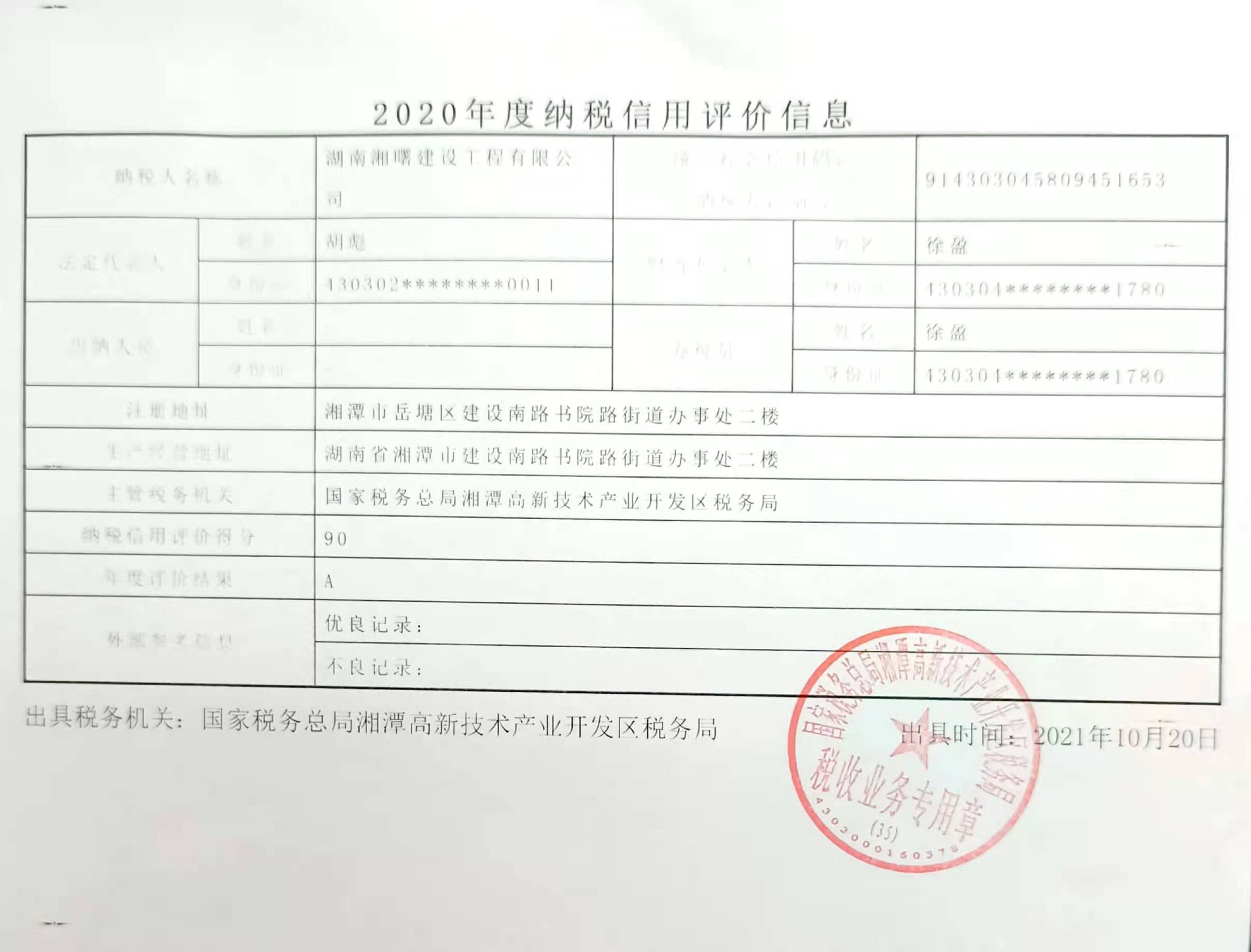 企業納稅信用等級報告: