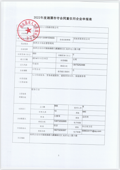 本企業根據《湘潭市守合同重信用企業申報規定》等編制 2022 年度企業信用報告書,并保證本報告書內容真實、準確、完整。