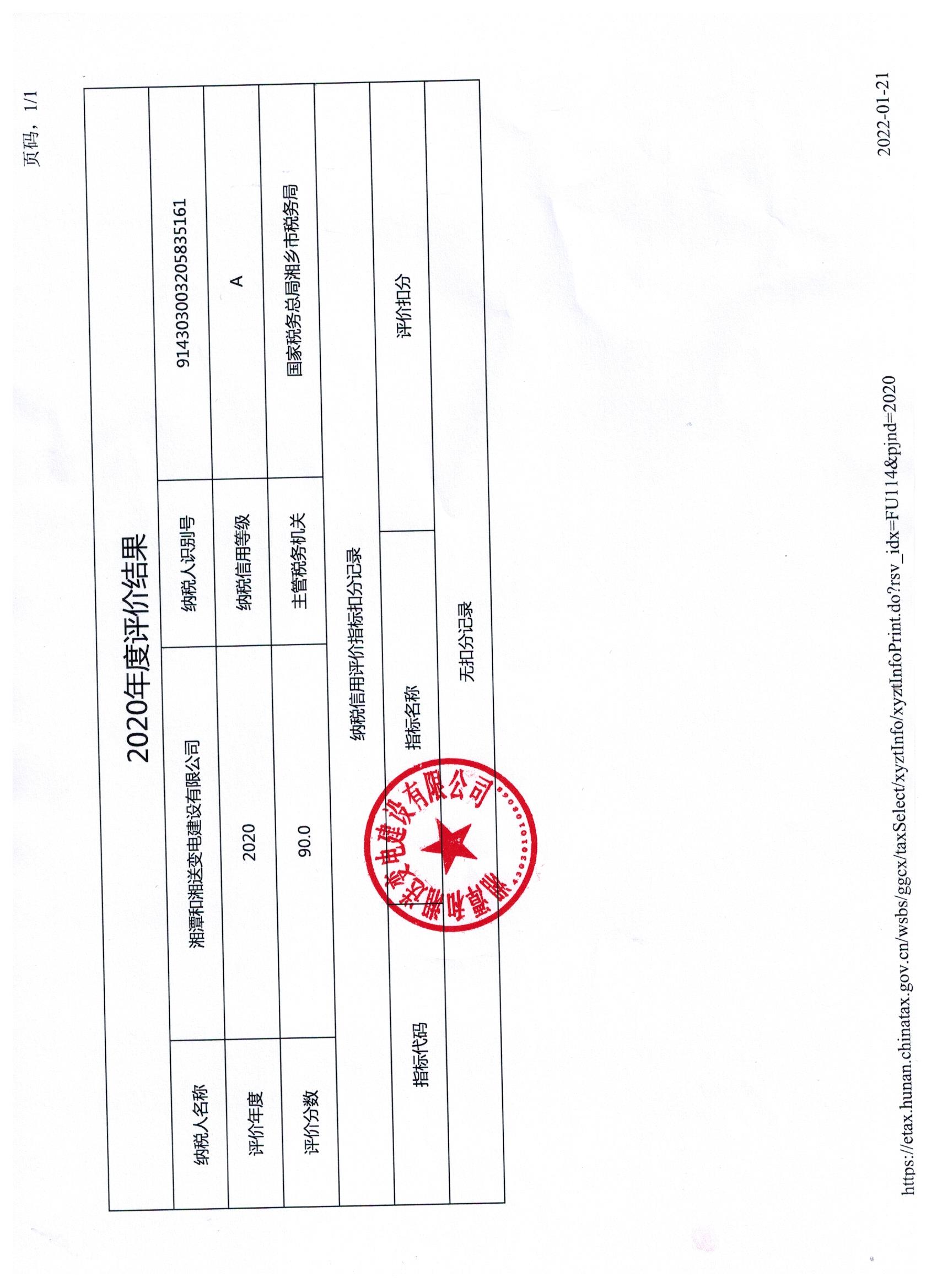 企業納稅信用等級報告: