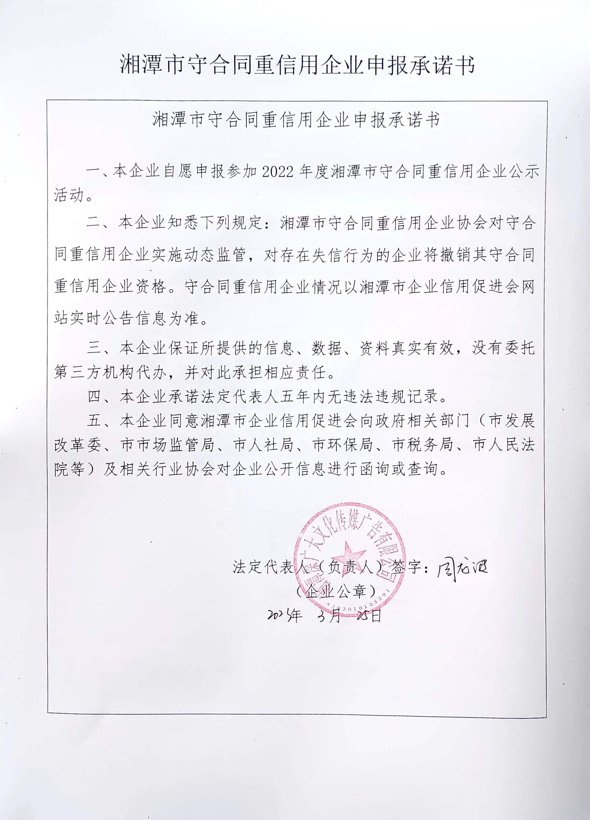 本企業根據《湘潭市守合同重信用企業申報規定》等編制 2022 年度企業信用報告書,并保證本報告書內容真實、準確、完整。