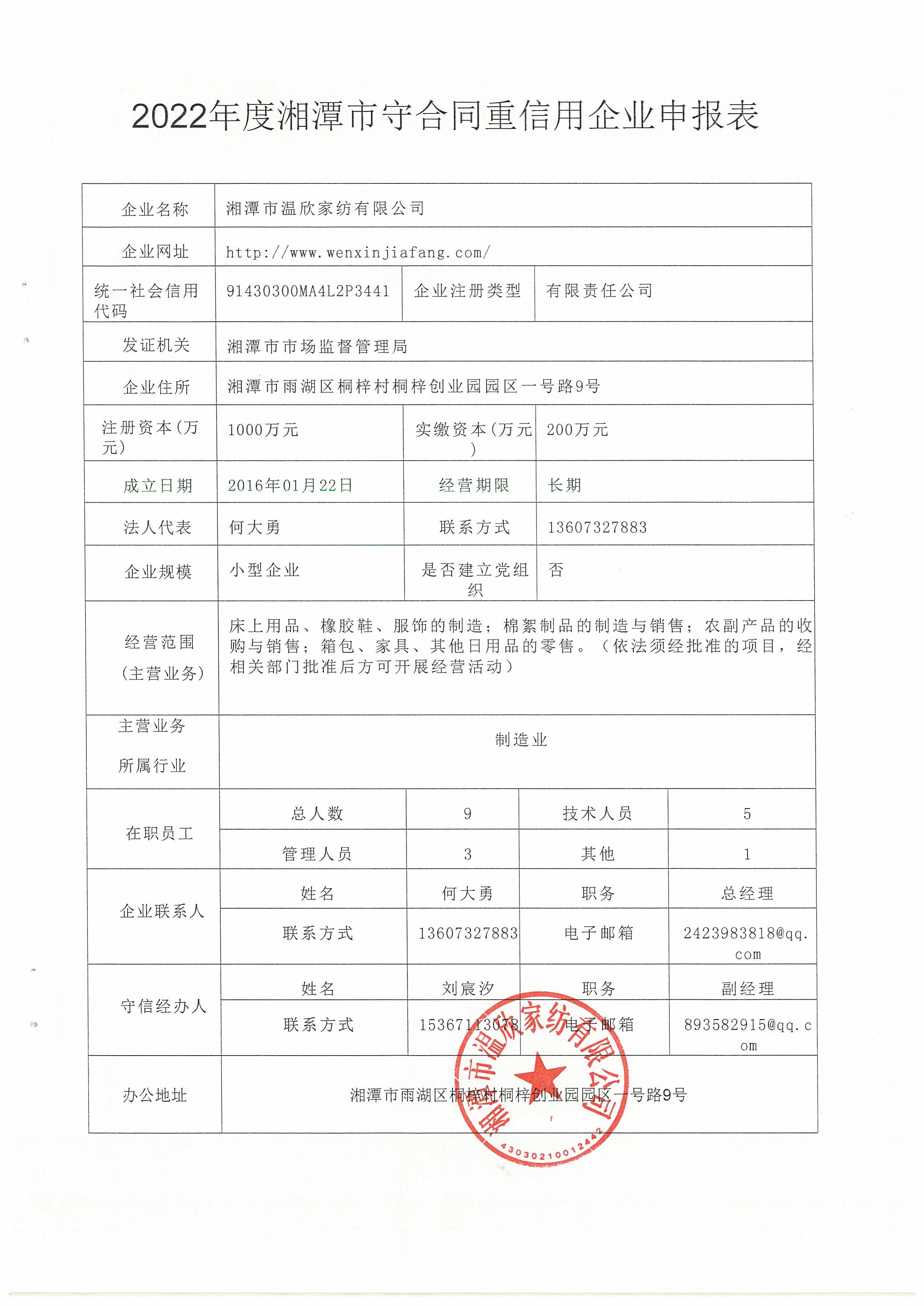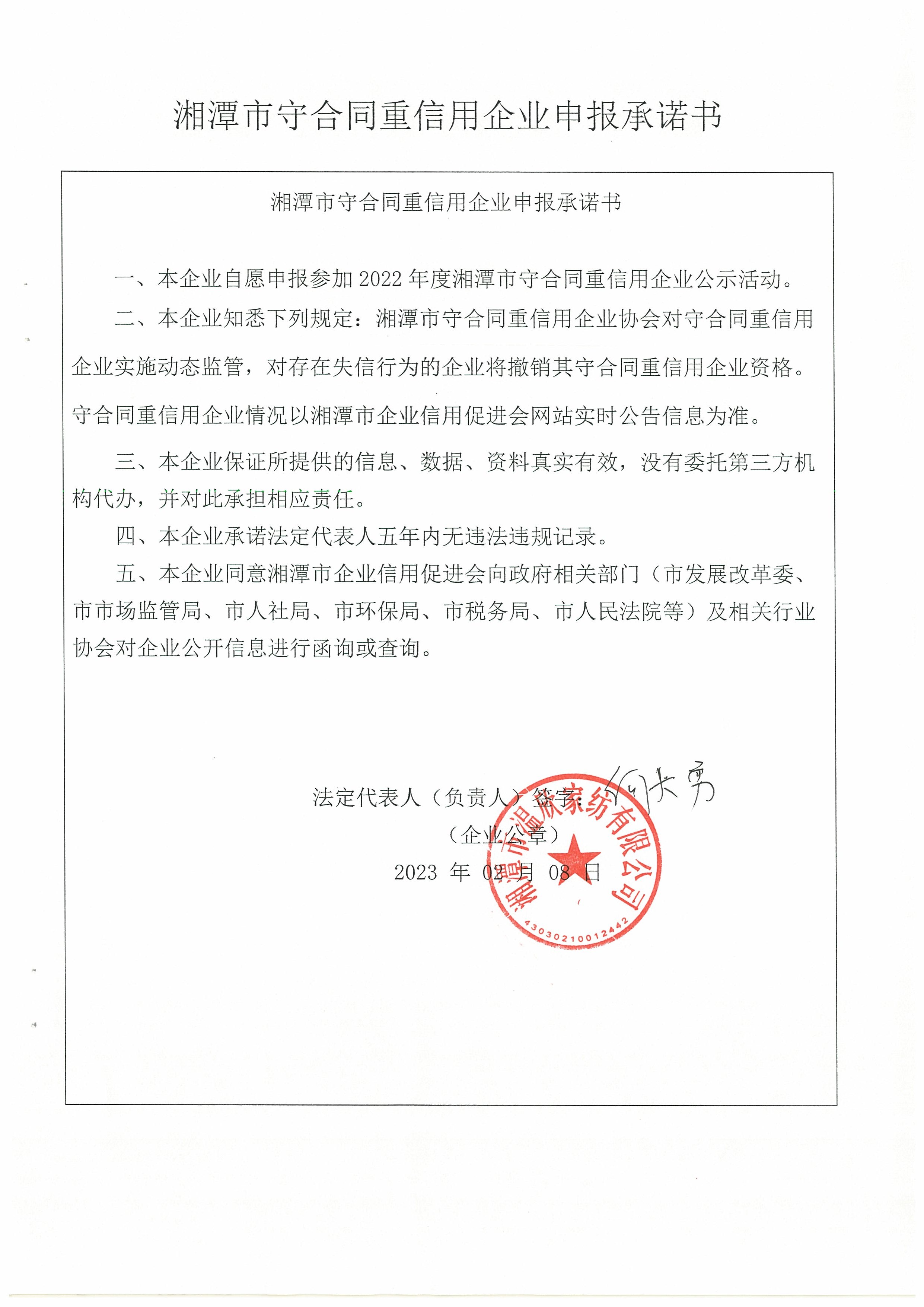 本企業根據《湘潭市守合同重信用企業申報規定》等編制 2022 年度企業信用報告書,并保證本報告書內容真實、準確、完整。