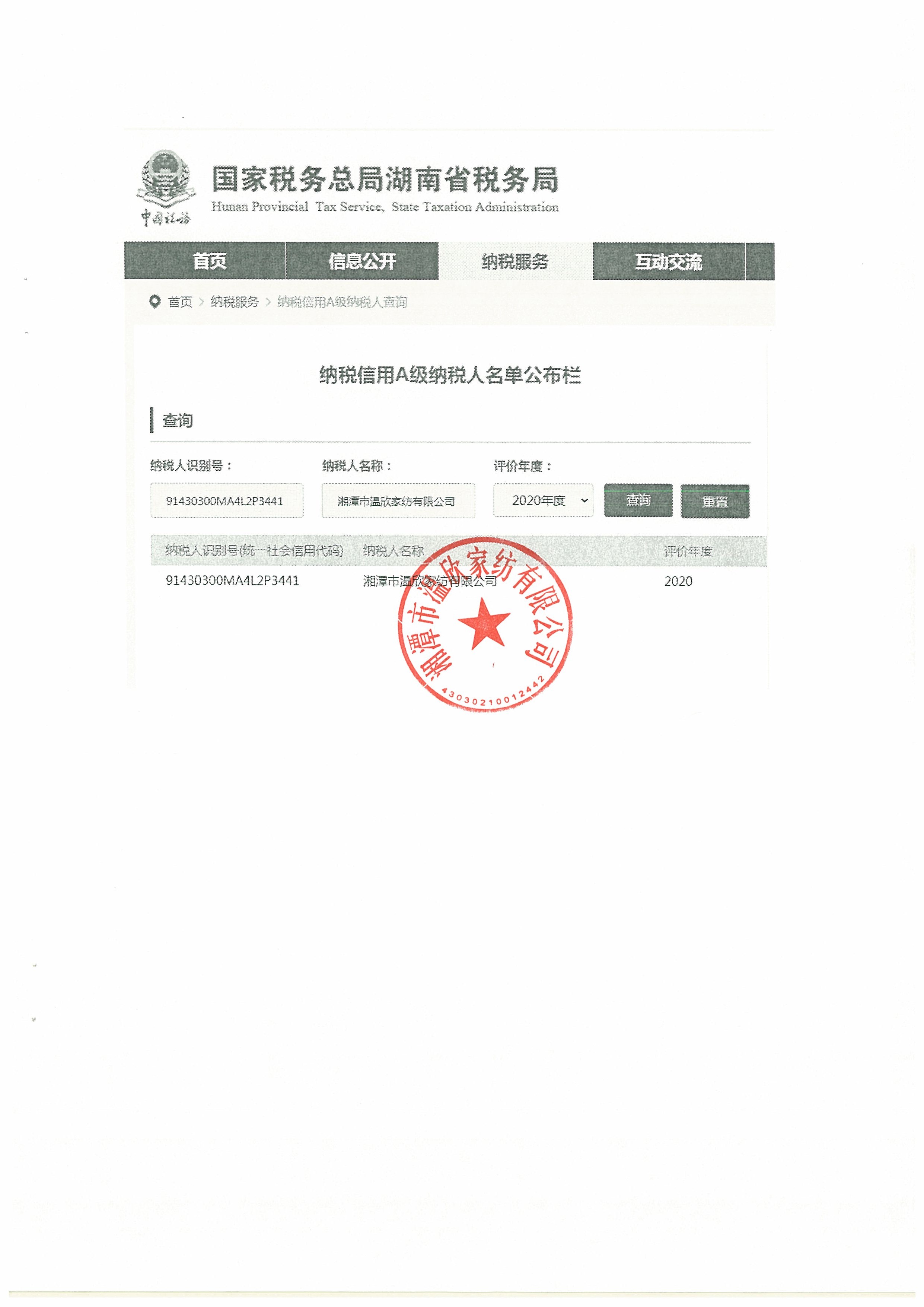 企業納稅信用等級報告: