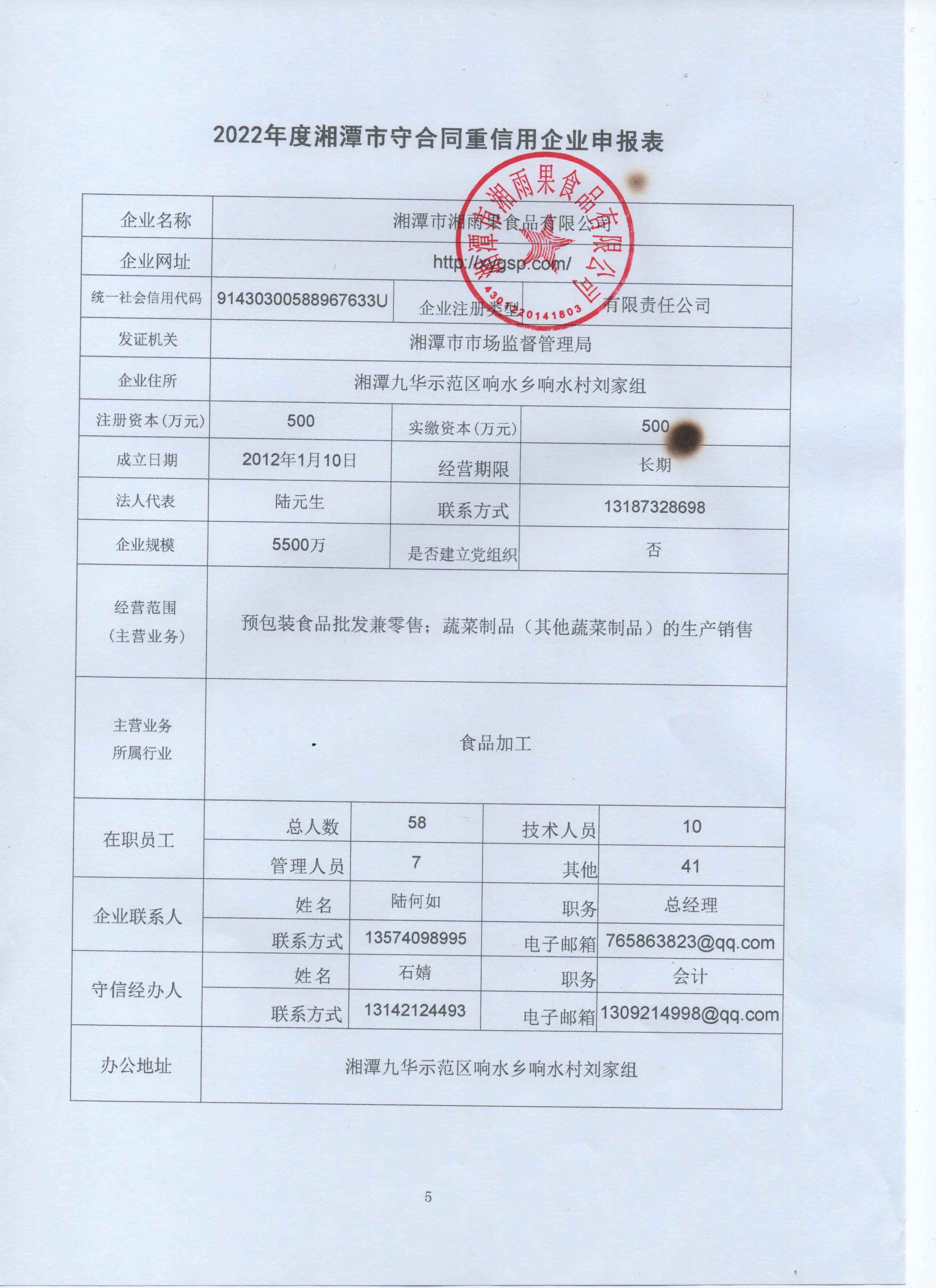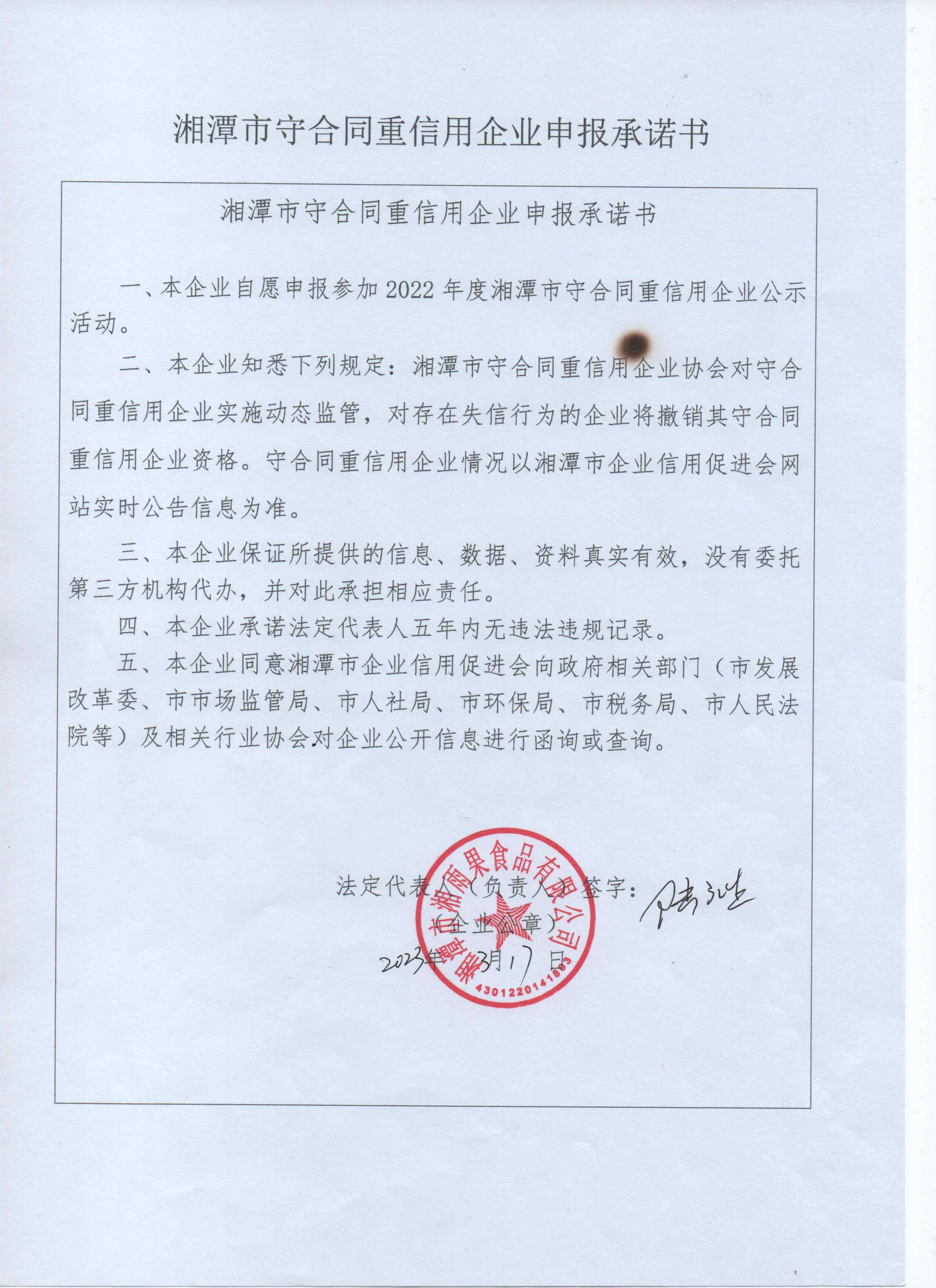 本企業(yè)根據(jù)《湘潭市守合同重信用企業(yè)申報(bào)規(guī)定》等編制 2022 年度企業(yè)信用報(bào)告書(shū),并保證本報(bào)告書(shū)內(nèi)容真實(shí)、準(zhǔn)確、完整。