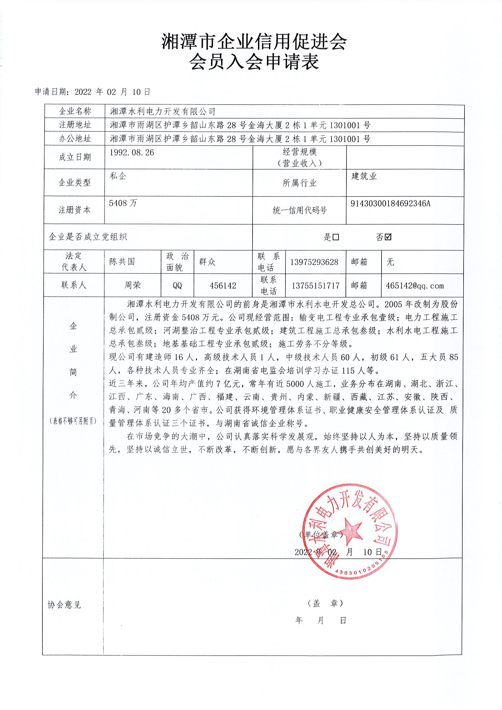 | 名稱: 湘潭水利電力開發有限公司 | 登記證號: 91430300184692346A | 法定代表人: 陳喜龍 | |||||||||||||||